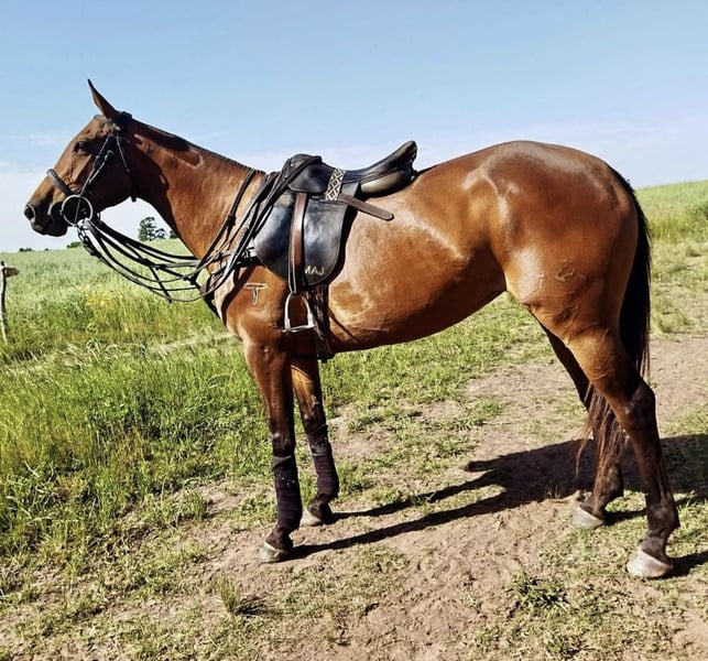 For sale is a beautiful polo mare, 9 years old, Argentine Polo, sire stallion Ellerstina Open Morboso, dam thoroughbred Lortisal. Plays Lowgoal to Highgoal. Suitable for children, beginners, and advanced tournament players. She is trained by a professional groom and is played by me several times a week. She is regularly dewormed, shod every 30 days, and her teeth were done at the beginning of the season. She can be viewed and tried out at any time in Thann/Holzkirchen.