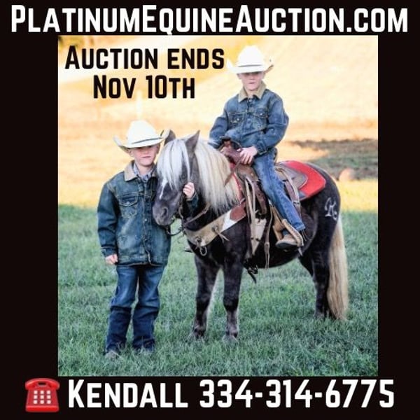 ONLINE AUCTION Place your bids at www.PlatinumEquineAuction.com Starting Bid $3500 Auction ends November 10th, 2024 Need a new saddle? Check out White Rock Saddles on our website or Facebook! Turbo the super pony!! He’s a 7 year old 38 inch tall gelding and the ultimate beginner safe pony. Just in time to be the perfect Christmas gift for your little one. Turbo is not only beautiful to look at he’s bullet proof safe for all levels of kids. He’s been hauled to rodeos and has given multiple pony rides to kids that have never sat on a pony before and he delicately took good care of each of them as young as 2 years old. Everything he knows we have trained him to be and perfected by our twin boys. My boys have put many of miles on this little guy from the arena to the trails. They can independently walk to his pasture and catch him with a halter in their hands, he will come find them. He’s been around all the noise, music and big crowds, you can’t upset him. Dogs, cats, cows, tractors, four wheelers, motorcycles, the list goes on, if you can think it, he’s been around it and seen it. He’s is the most perfect pony to start your child out with and give them confidence as they grow up and get ready for the next level of riding. He will walk, trot, and lope. He rides like a big horse with buttons when they are ready to go faster. Turbo will follow you around willingly like a puppy dog for kiddos that aren’t ready to independently ride alone and steer him. He has NO vices. He’s solid and sane and truly loves little people. He has the most kind demeanor with a kind eye and huge personality. Turbo rides great around other ponies and big horses as well. He’s been left off several months at a time and when you get him up he’s the same pony you turned out. It takes no special tricks to keep him solid he aims to please. He’s very laid back and calm in the most chaotic moments of what life brings around our place. We take pride in making sure the ponies we offer to the public check all the boxes that we offer and he certainly does. He wears our families brand proudly. We would love to see this little guy go be loved by a kid and he can show them the ropes of what it’s like to own their very own special pony they will love and cherish for many years to come and mostly give the parents a peace of mind knowing the pony they are on and around are safe. He is a very easy keeper doesn’t require anything extra. He is sound, no past injuries and zero health issues. He has new coggins and health certificate. Please reach out to me for any other question. I’d love to chat with you about this once and lifetime pony. Contact Kendall Robertson 334-314-6775. Located in Huntland, TN. ONLINE AUCTION Place your bids at www.PlatinumEquineAuction.com Starting Bid $3500 Auction ends November 10th, 2024 Need a new saddle? Check out White Rock Saddles on our website or Facebook!