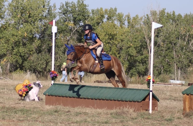 Super star sport pony looking for her perfect rider! Make her your next event pony, or hunter jumper super star. Buttercup has brains, scope, and size. She is unflappable, doesn’t care about anything, kick ride, and willing to take a joke. Lovely, elastic movement, and a talented natural jumper. She has a ton of heart and try. Intelligent, with just the right amount of Pony persistence. She most recently competed at Starter level at the Tomora Horse Trials with a junior rider, and aside from a few green horse bobbles, she was a super star! She stood tied at the trailer like a pro and was her normal self in all 3 phases. She has been on mountain trail rides and happily leads or follows, brave across water and stands tied to trees with no problem. Trailers to different facilities by herself with no qualms. No buck, no bolt, no spook, SAFE. You can climb on her, over her, stand on her, jump off her, and she stands there. She is still young and green and her buttons are not yet all confirmed, so she is smart enough to outwit an inexperienced or timid rider (although all she really does is come to a stop and refuse to move). But she tries hard and is eager and quick to learn with heart and athleticism. Would excel with a confident, forward thinking young rider in a program or a small adult looking for a fun pocket sized ride. She is easily unicorn material in the making. Buttercup is currently working on improving her contact in dressage, basic lateral skills, and flying/auto changes in coursework. She is easily schooling Beginner Novice jumps.