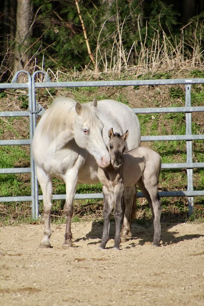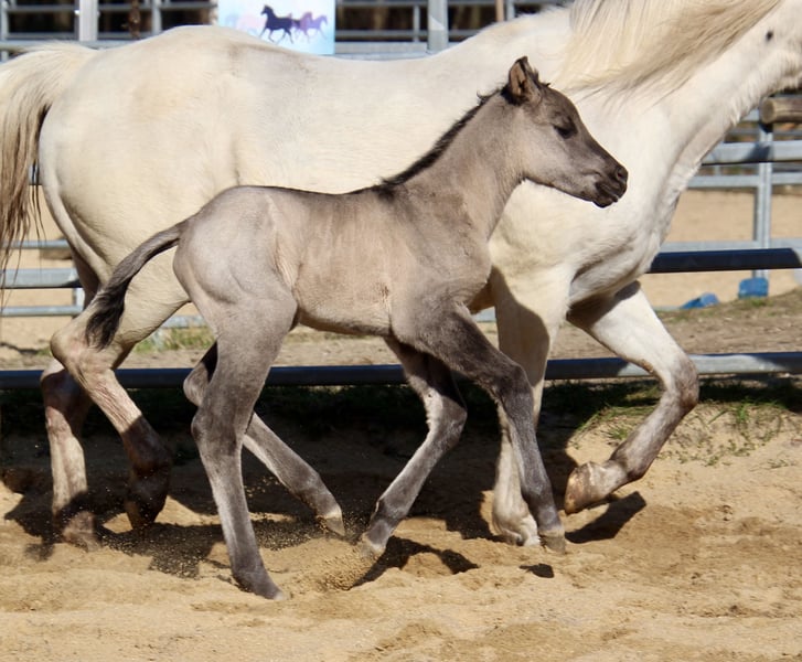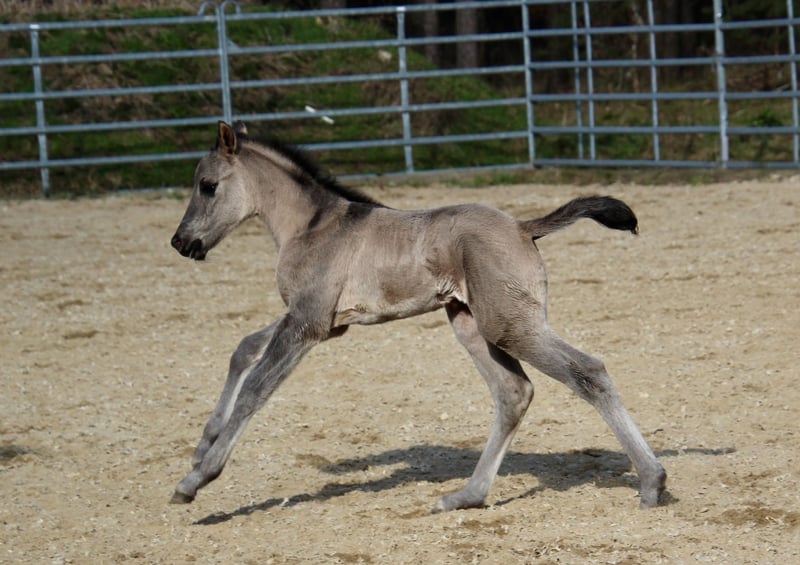 Am 16.3.2026 wurde in den frühen Abendstunden diese kleine Zuckerpuppe geboren ❤️ - grullo ( homozygot black ) - 6 Panel n/n - amerikanische Papiere - gechipt mit Pass und kleiner AKU -Ratenzahlung möglich!!! „ER Oakie‘s Misty“ überzeugt sofort mit ihrem wahnsinnig korrekten Fundament,so gerade Beine sieht man selten! Ihr zuckersüßes Köpfchen,die kräftigen Gelenke und ihre traumhaft dunkle „grullo“ Färbung machen sie perfekt! „Misty“ zeigt sich in den ersten Tagen dem Menschen sehr zugewandt und wir sind gespannt auf ihre Entwicklung! Ihr Papa „Oakie Silver Dust“ misst ein. Stockmaß von 156cm und somit gehen. wir davon aus,das die Kleine eher eine „Große“ wird! Ihr Vater stammt von der „Shining grullo Ranch“ aus Texas und mit bringt mit einem hervorragenden Allround Pedigree beste Voraussetzungen für „Misty“ mit! Ihre Mama „JR Touch of Snow“ ist seit vielen Jahren fester Bestandteil unserer Zucht und niemand möchte sie missen! Sie ist sowohl im Umgang als auch unterm Sattel eine Lebensversicherung und gibt dieses tolle Wesen,ihre Collness und die Nerven aus Drahtseilen ausnahmslos an ihre Fohlen weiter! www.east-ranch-poa.de die letzten Bilder zeigen den Vater