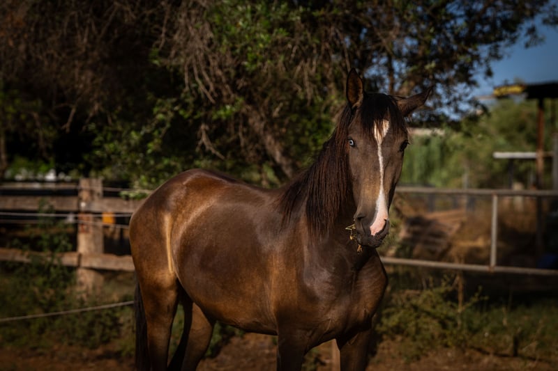 Azula – sportowa Portugalka o rzadkim charakterze Azula to 2-letnia, sportowo zbudowana portugalska klacz o obecnym wzroście około 158 cm. Posiada delikatną, wyrazistą głowę, charakterystyczną dla Lusitano, i zachwyca rzadkim kolorem ciemnego buckskin w połączeniu z wyrazistym, błękitnym okiem – prawdziwa atrakcja. W swoim usposobieniu Azula jest otwarta i ciekawska. W swojej 4-osobowej stadzie jest pewną siebie klaczą przewodzącą – sprawiedliwą, klarowną w komunikacji i zawsze pierwszą przy jedzeniu. Czy to do sportu, jako niezawodne koń do rekreacji, czy do hodowli – Azula ma doskonałe predyspozycje. Na życzenie może być również sprzedana w ciąży z naszym ogierem Grullo (za dodatkową opłatą). Młoda klacz z charyzmą i potencjałem.