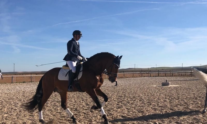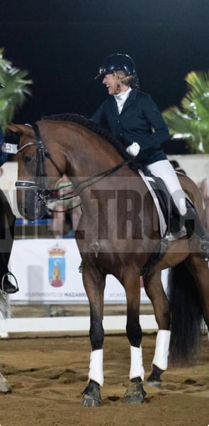 Zum Verkauf steht ein Dressurpony mit hervorragender Abstammung. Besonders hervorzuheben sind sein ausgeglichener Charakter und seine Gehorsamkeit. Das Pferd verfügt über umfangreiche Turniererfahrung und erzielte gute Ergebnisse. Es ist Vizemeister in Castilla-La Mancha in den Altersklassen 4- und 5-Jährige. Das Dressurniveau umfasst Rücken-zu-Rücken-Übungen, Unterstützungen, Pirouetten, Piaffe und Passage. Es ist geeignet für Reiter ohne allzu viel Erfahrung. Das Pferd hat Erfahrung auf Messen und bei Kutschenfahrten (nicht rückwärts). Im letzten Jahr wurde es von seiner jetzigen 13-jährigen Besitzerin für Kinderprüfungen trainiert.