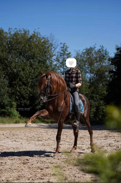 Captain Hook ist ein 10-jähriger PRE-Wallach (Dunkelfuchs), der mit seinem stolzen Ausdruck, seiner Ausstrahlung und seinem ausgeglichenen Charakter sofort begeistert. Im täglichen Umgang zeigt er sich als äußerst menschenbezogen, vertrauensvoll und leistungsbereit. Er ist ein verlässlicher Partner, der seinem Reiter sowohl im Training als auch in der Freizeit sehr viel Freude bereitet. Durch seine bisherige Ausbildung in der Vielseitigkeit ist Captain Hook vielseitig gefördert worden. Er kennt die Arbeit in der Dressur, den Springparcours sowie das Geländetraining und zeigt sich dabei stets motiviert, aufmerksam und lernwillig. Neue Aufgaben nimmt er mutig an und arbeitet gerne mit seinem Menschen zusammen. Auch im Gelände ist er absolut abgeklärt. Egal ob alleine oder in der Gruppe. Besonders gerne geht er schwimmen. Er ist sowohl mit als auch ohne Sattel problemlos zu reiten. Ebenso kennt er das Reiten mit Halsring oder mit Halfter und Strick. Dazu kann er auch noch sehr viele Tricks: - spanischer Schritt - liegen - steigen - smile - etc. Er kennt keinerlei Unarten wie Bocken, Beißen oder Treten und ist im Umgang stets angenehm und unkompliziert. Außerdem kennt er das Auswärtstraining und bleibt auch in fremder Umgebung gelassen und konzentriert. Aktuell läuft er barhuf. Er wird regelmäßig entwurmt und ist geimpft. Auf Wunsch können gerne Videos zugesendet werden