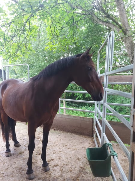 Je vends mon hongre espagnol, né en 2013. Jilguero, ou simplement Jil, est un cheval très gentil et calme. Malheureusement, je ne peux plus lui consacrer autant de temps qu'il le mérite. C’est pourquoi je souhaite le confier à de bonnes mains. Il était avec moi dans un petit groupe composé de deux autres chevaux, je peux donc garantir qu’il s’entend bien en groupe. Il est sûr en terrain varié, que ce soit seul ou en groupe, cela ne pose aucun problème. Des séances de saut occasionnelles lui procurent également du plaisir. Il apprécie un entraînement varié, y compris parfois du travail à pied et de petits tricks. Il est très réactif aux aides et demande peu de main, mais ce n’est pas un cheval pour débutants, il a besoin d’un cavalier sûr de lui et calme. Pour toute question ou information complémentaire, je reste à votre disposition. Une visite sur place peut être organisée sur rendez-vous.