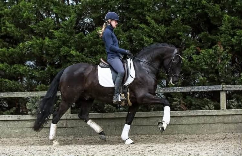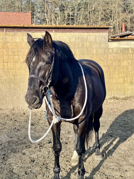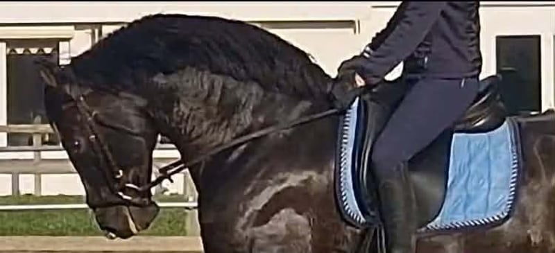 PRE Baroque gelding almost 13 years old! 1m64 Good xRays, can be send Vaccinations (Tetanus, Influenza and Rhino) are up to date Dentist comes every year in December No stable vices, very easy and kind! Very healthy and sound horse This amazing beautiful boy is looking for his new partner in crime. Due to circumstances from the owner it’s sadly they had to make the choice of finding a new partner for him. He knows exercises from the 3th level and flying changes ,but because of 6 months out of work all need to build up again. We are starting his training now for a few weeks and he is climbing back to where he was, that's why he's available at a lower price. He has a super super sweet character it’s a very honest horse. But he's not yet suitable for beginners or insecure riders, he's bred for sport. He has expierence in dressage, working equitation clinics and did a lot of hacks, even in the sea! He has a clean x rays check and is located in Belgium but we can help with Traces and Transport. Bred in Spain by https://yeguadalasnegrillas.com/