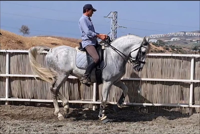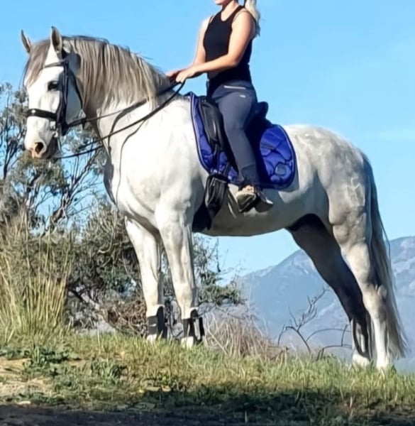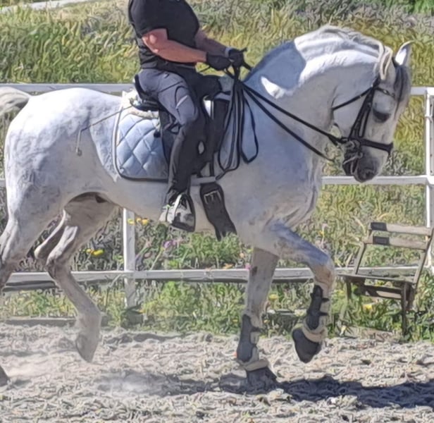ARMAS IJAR: NEARLY GRAND PRIX RIDDEN, SUPER BAROQUE PRE GELDING Breed: Pura Raza Espanola (ANCCE) Gender: Gelding Age: 03/2013 Height: 1.65m Education: Piaffe, Passage, Tempi Changes, Pirouette, Half-Pass/Traversale Location: Spain Armas Ijar is a super baroque & top ridden PRE gelding from the famous Plaza de Armas bloodlines! This stunning beauty is nearly performing all Grand Prix exercises and is absolutely fun to ride! He has excellent behavior under saddle and in handling, coming from a 5⭐️ home and was ridden by a woman. Now he is searching for his forever home! For more information and videos, contact us via WhatsApp ➡️ +34 622 509 702