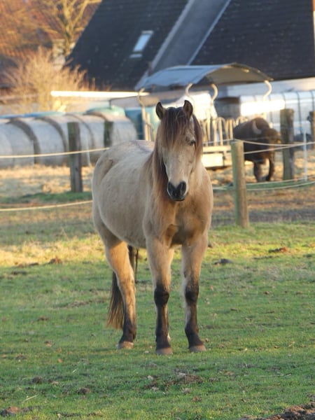 We are heartbroken to be looking for a new owner for our beloved Buckskin gelding, Espirito. Unfortunately, my daughter no longer has the time to care for him due to her training commitments. He was born in 2011 and stands at approximately 1.46 meters. He has been with us since 2020. Espirito, or rather Spirit, is a wonderfully sweet pony who is completely fearless and relaxed in the terrain. However, he also has a small pony stubbornness and is not suitable for beginners or as a weight carrier. You should not weigh more than 60 kg. His rider is a 13-year-old girl who gets along well with him. He is kept in an open stable in a mixed herd with buffalo. Spirit is somewhat lower in the hierarchy but still tries to assert himself from time to time. He is sold with all his tack and equipment and this is not an urgent sale. We are taking our time and will also visit potential new homes if possible. No dealers and no riding school operations.
