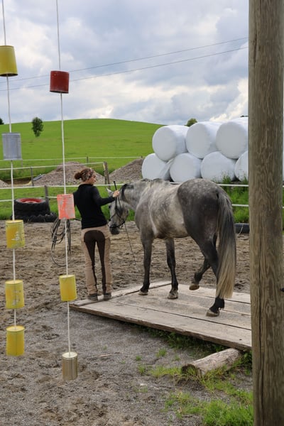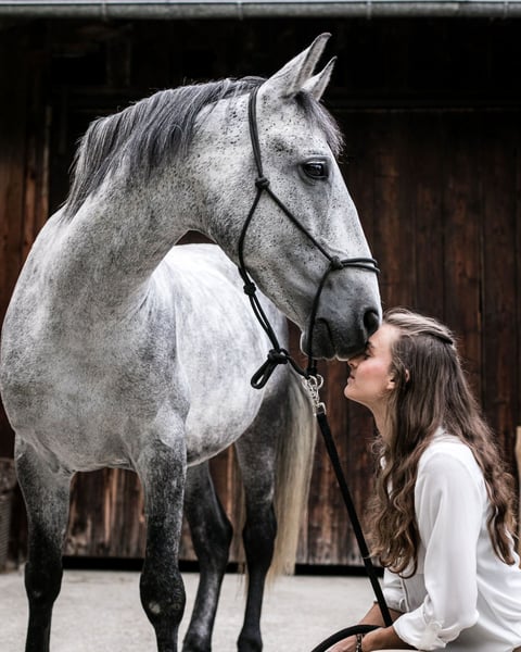 C'est avec le cœur lourd que je vends mon hongre PRE, car je ne peux tout simplement plus lui consacrer assez de temps. Jusqu'à présent, il était un pur cheval de loisir, il a déjà fait des randonnées d'orientation et il aime aussi les promenades. Actuellement, il travaille beaucoup au sol et connaît les principes de base du horsemanship. Il aime le travail en liberté et l'un ou l'autre saut en liberté, connaît l'équicinétisme et quelques petites leçons de cirque. C'est donc un vrai cheval polyvalent qui a besoin de changement. Il est très fin dans le commerce, réagit au langage corporel et à la voix, mais a besoin d'une direction claire et n'est donc pas un pur cheval de débutant. Il n'a aucune mauvaise habitude, est toujours maniable et a déjà été monté par de jeunes enfants. Je n'ai malheureusement pas assez de temps à lui consacrer et ne le cède qu'en raison de mes changements personnels. C'est un cheval au grand cœur, qui vous accompagne dans toutes les situations. Il est de haut rang et ne peut donc se trouver que dans des troupeaux de hongres purs. Il est absolument intrépide en extérieur, connaît les tracteurs, les camions, les vaches, les moutons, etc ... Il a une alimentation légère, des sabots nus, est régulièrement vermifugé et en bonne santé. Il connaît l'écurie ouverte, le paddock trail et le box pour la nuit. Je souhaite lui trouver une place où il pourra arriver, où il sera aimé et où il aura beaucoup d'exercice. La place avant le prix ! N'hésitez pas à me contacter si vous avez des questions