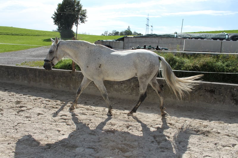 It is with a heavy heart that I am selling my PRE gelding, as I simply no longer have the time to do him justice. He was previously a pure leisure horse, used to go on orienteering rides and also enjoys hiking tours. He is currently being worked a lot on the ground and knows the basic principles of horsemanship. He enjoys free work and the odd free jump, knows Equicinetic and a few smaller circus lessons. So he is a real all-rounder who also needs variety. He is very fine in handling, reacts to body language and voice, but needs clear leadership and is therefore not a pure beginner's horse. He has no naughtiness, is always manageable and has also been ridden by small children. Unfortunately, I have far too little time for him and am only giving him away due to my personal changes. He is a kind-hearted horse who goes through thick and thin with you. He is high in rank and can therefore only stand in pure gelding herds. He is absolutely fearless in the field, knows tractors, trucks, cows, sheep etc ... He is easy to feed, barehoofed, regularly wormed and healthy. He knows an open stable, paddock trail and overnight box. I would like to find a place for him where he can arrive, where he likes to be with people and has lots of exercise. Place before price! Please contact me if you have any questions