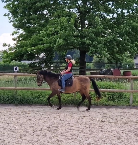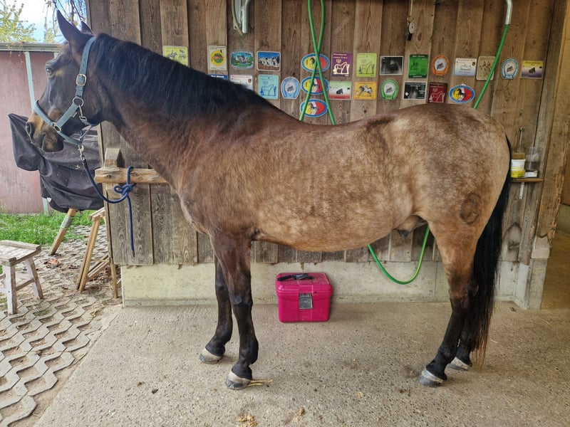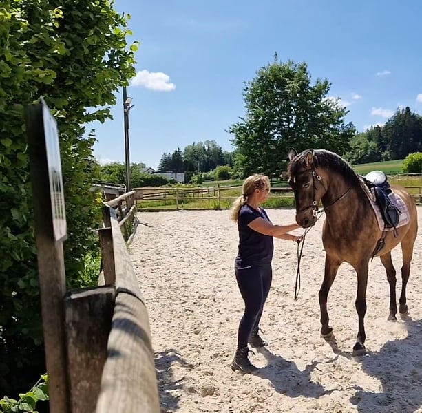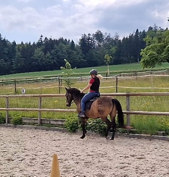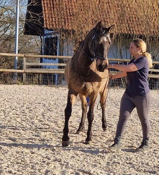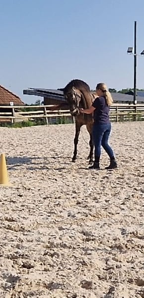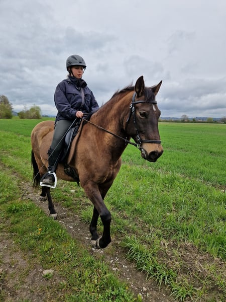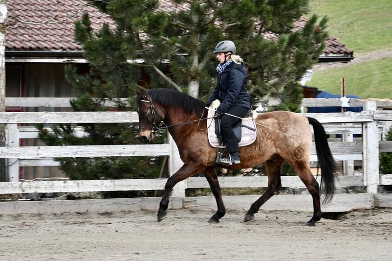 Divo ist ein sehr lieber, gutmütiger Wallach. Er ist eher ranghoch, sicher und charakterfest. Bocken oder Steigen oder flüchten kennt er nicht. Ausritte alleine oder in der Gruppe, verkehrssicher, kennt Hauptstrassen, Camions, Traktoren u.s.w. Sehr gute Hufe, kann beschlagen oder Barhuf sein. Divo sucht eine gute Reiterin, die einen gutes Reitniveau hat. Er eignet sich für jem. der Freude an z.B. Klassischer Reitkunst hat. Seitengänge gehören zu seinem Training, sowie Bodenarbeit und Arbeit an der Longe. Piaffe ist im fortgeschrittenen Prozess, braucht aber noch Zeit. Wegen Überlastung und einer Krankheit muss ich ihn verkaufen. Wenn du ernsthaftes Interesse hast, kannst du ihn besuchen und probereiten. Bedingung: Du bietest ihm einen Offenstall oder zumindest täglichen Weidegang in einer konstanten Gruppe. Ich verkaufe ihn nur an eine erfahrene Person.