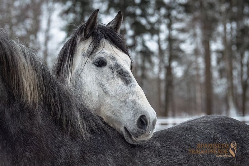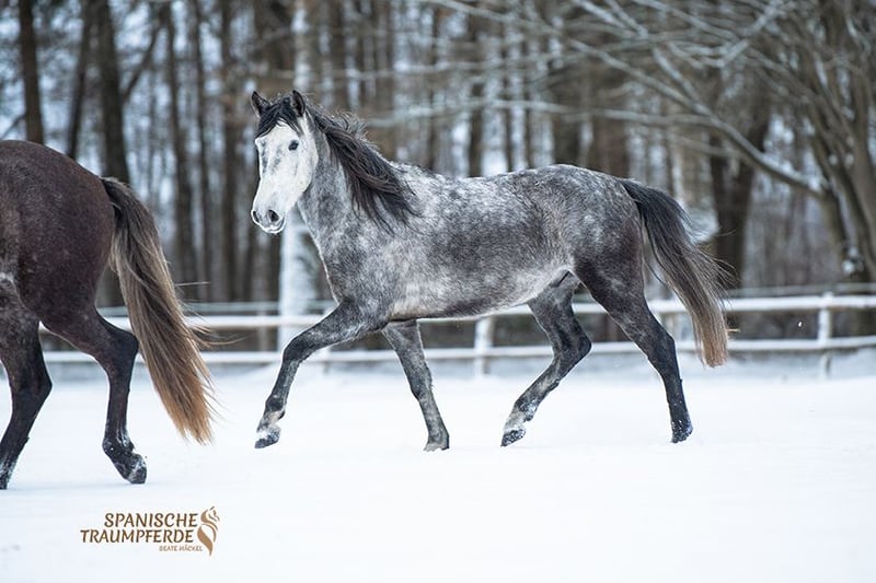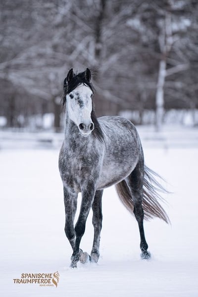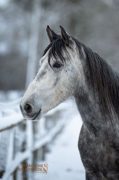 Uroczy konik w kompaktowym rozmiarze – to nasz ✨SALOMON SH✨. Na początku nieco nieśmiały, ten piękny ogier PRE teraz pokazuje swoją dowcipną i bardzo przyjazną dla człowieka stronę. SALOMON SH nadal rozwija się fizycznie i ma jeszcze czas, aby spokojnie wzrastać w swoim ciele. Mimo to, prezentuje piękny zakres ruchu, jest pracowity i niezwykle łagodny podczas pracy, chętnie się uczy i chce zrobić wszystko dobrze dla swojego opiekuna. W wieku odpowiednim dla początkującego jeźdźca, na początku swojej edukacji jeździeckiej, głównie rozwijamy tego pięknego ogiera PRE poprzez pracę na ziemi i z uzdą. Zna już siodło i ciężar jeźdźca, a pod jeźdźcem zachowuje się wzorowo. Zdjęcia rentgenowskie są dostępne. Lokalizacja: Traventhal, 23795
