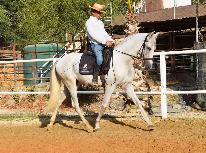 lieber Charakter, in den Grundgangarten geritten, gute Abstammung, Abstammung: Yeguada Triana Villarrubia, Yeguada Ferrero, er hat mehrere qualifizierte Vorfahren www.elegante-andalusier.com