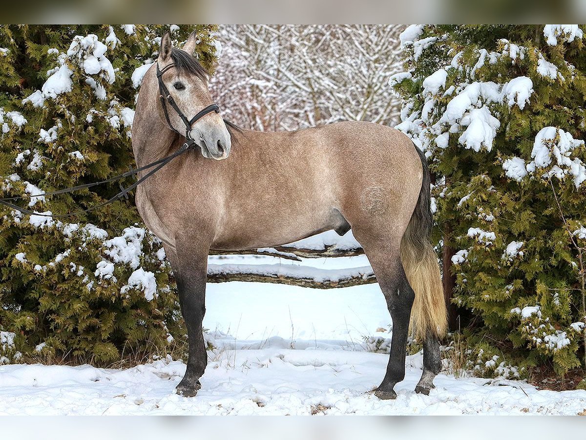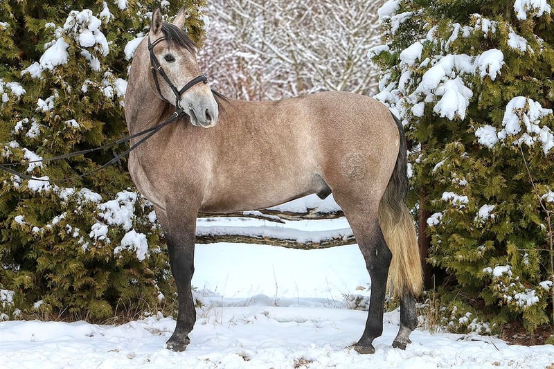 Zum Verkauf steht ein braver, sechsjähriger PRE-Wallach mit Papieren, ca. 1,67 m groß. Bolero ist gelassen und brav, aber auch sensibel. Daher suche ich jemanden, der ihn auf freundliche und respektvolle Weise ausbildet. Er ist fein im Umgang und gut erzogen an der Longe, aber Konsequenz ist wichtig. Zudem kennt er Bodenarbeit, Freiheitsdressur und Springen macht ihm ebenfalls großen Spaß. Ich halte ihn für ein tolles Pferd für beispielsweise Working Equitation, aber auch das Crossreiten würde er mit Sicherheit sehr genießen. Ein vielseitiges Pferd also! Seit letztem Sommer wird Bolero mehr unter dem Sattel geritten. Vorher stand er eine Zeit lang still, weil ich schwanger war, und wurde damals nur vom Boden aus gearbeitet. Unter dem Reiter reagiert er sehr gut auf das Sitzen, lernt schnell. Er ist jedoch sensibel und braucht klare Anweisungen, weshalb ich ihn nicht an Anfänger abgebe. Derzeit steht Bolero 24/7 draußen mit einem Unterstand, was ihm sehr gut gefällt. Er braucht einen Stall, in dem er mindestens tagsüber viel draußen sein kann. Er ist brav beim Hufschmied (hat nie Eisen getragen), wurde regelmäßig geimpft etc. Ich suche unbedingt ein liebevolles Zuhause für ihn. Ich wünsche ihm einen Besitzer, der ihm viel Abwechslung bieten kann und freundlich im Umgang mit Pferden ist. Der Preis ist bei einem guten Zuhause verhandelbar.