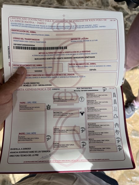 CORREFOC PRE hengst van 3 jaar, 165 cm hoog, net van het land gekomen met zeer goede bewegingen en morfologie, begint met zijn ontspanning en wordt begonnen met rijden.