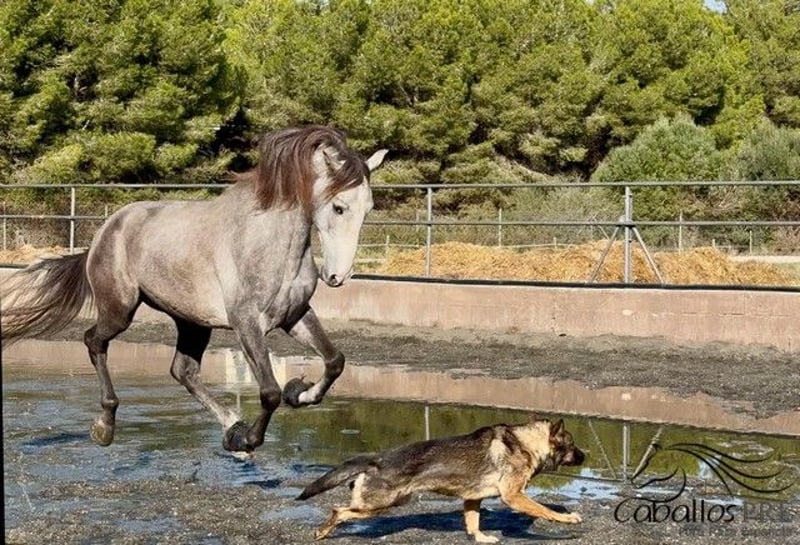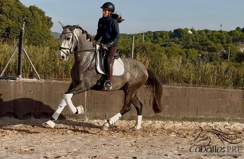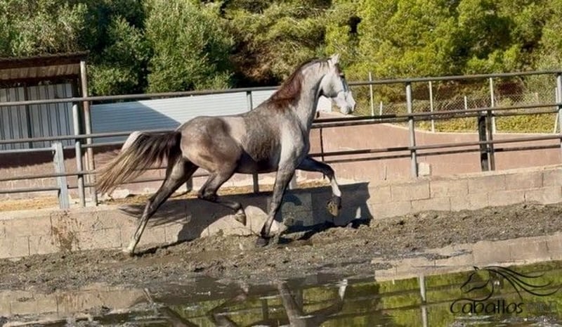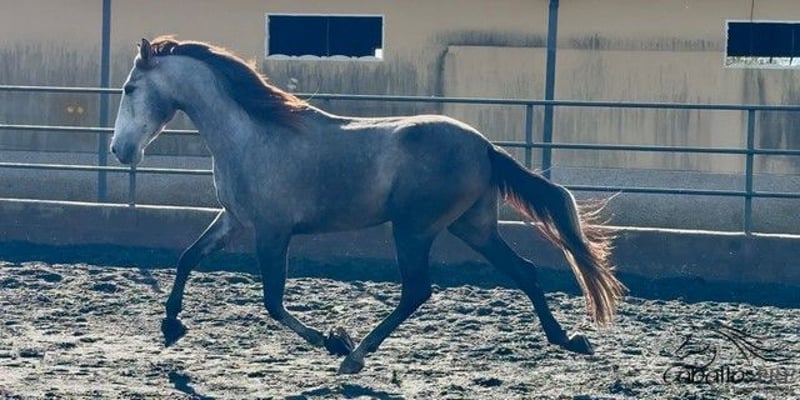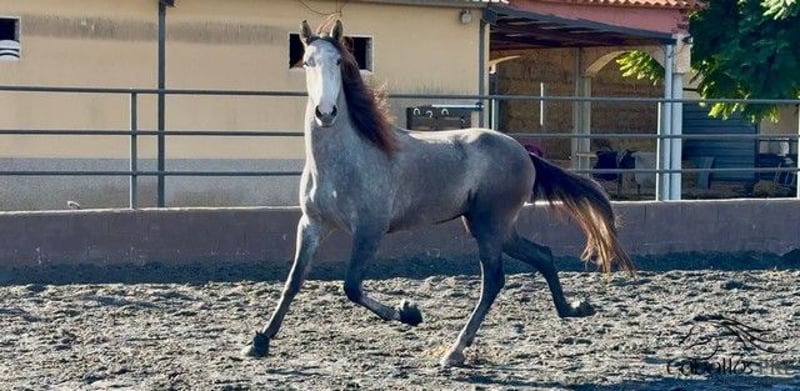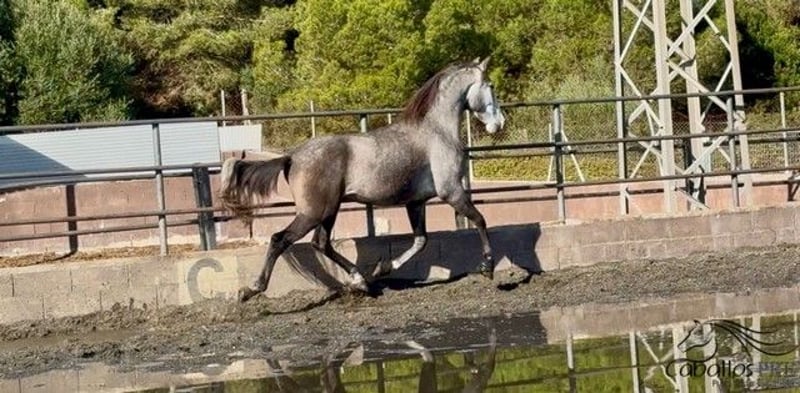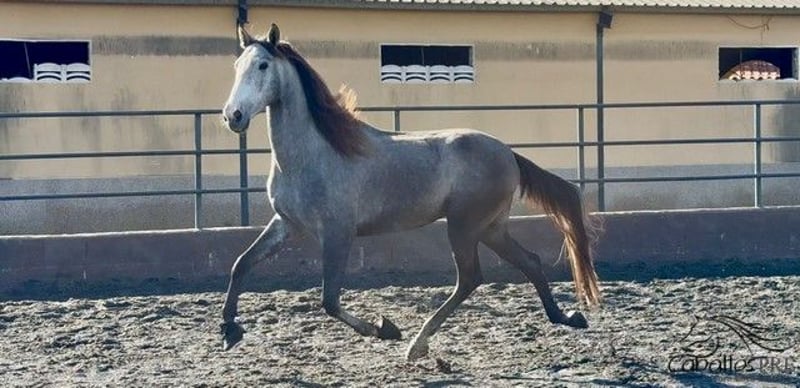 Feriante is a tall, well-built PRE gelding with excellent movement quality. Due to his growth, he was only recently backed and now walks calmly in the arena under saddle. He is very well-behaved in handling, without any vices. Under saddle, he also shows willingness to work and is eager to learn. He picks up new exercises quickly and enjoys working. He is currently being gently and progressively further trained. He has an outstanding pedigree: his sire, "Evento Salvatella," is a son of the Mejorante stallion "Corinto X," who in turn is a son of the elite stallion "Educado X." An extremely interesting young stallion for classical dressage, but of course also suitable for the ambitious leisure dressage rider. Location: Barcelona, Spain Price: currently €11,000 If you would like more information about him, please contact us by phone. We are happy to send videos after a personal conversation. Please understand that we do not respond to anonymous inquiries. Transport can be organized worldwide. Viewings are possible at any time by appointment.
