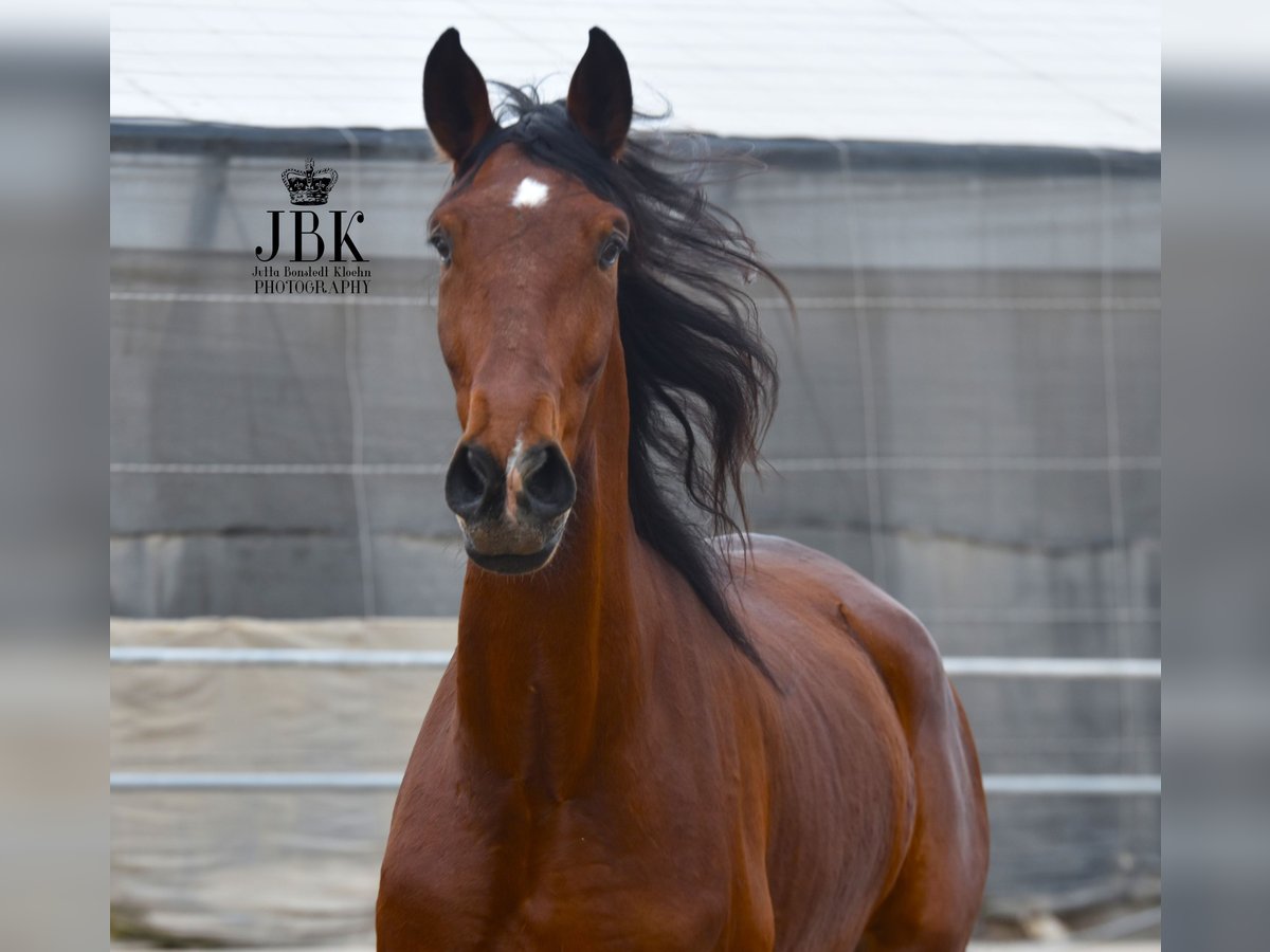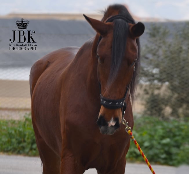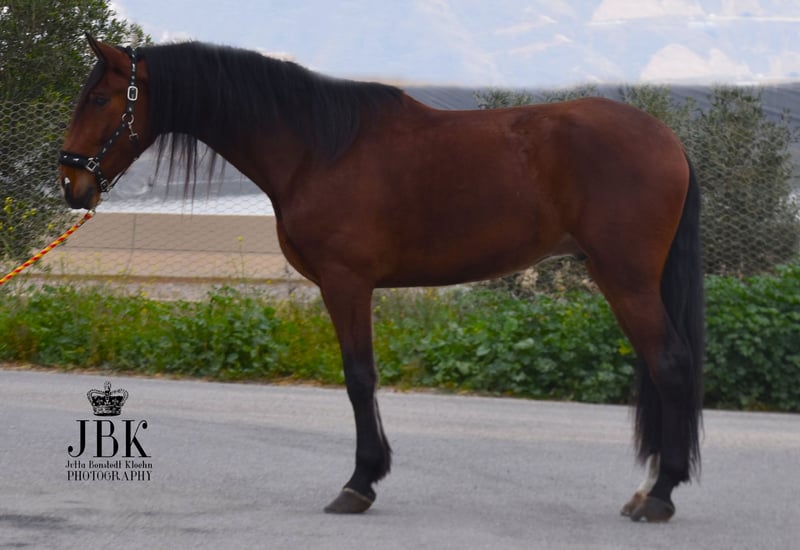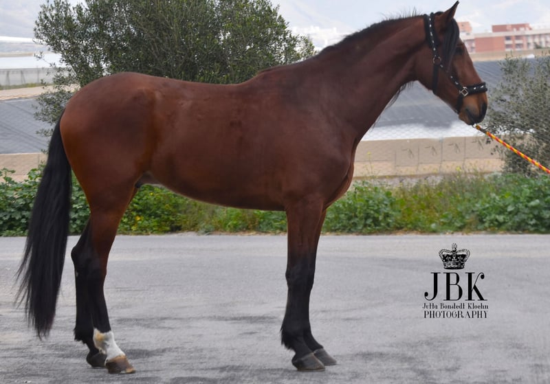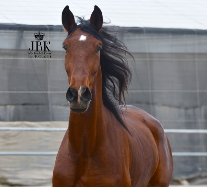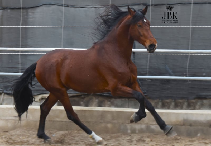 Questo esemplare eccellente e di grandi dimensioni di PRE sicuramente porterà molta gioia al suo futuro proprietario. Dal punto di vista caratteriale, è un vero gioiello e vorrei sottolineare la sua intelligenza straordinaria. Impara molto rapidamente e ha una capacità di comprensione eccellente. Jecomias è stato castrato nell'autunno 2023. La sua formazione di base è ancora in corso. Cammina con sicurezza in tutte le andature fondamentali, sia a mano destra che a mano sinistra. Inoltre, ha un'uscita quotidiana in un'ampia paddock, così da poter liberamente esprimere la sua gioia di movimento. Si trova molto bene con gli altri cavalli. È un cavallo che, a causa della sua attuale altezza, avrà bisogno di un po' di tempo prima di trasformare il suo aspetto leggermente magro. Tuttavia, da adulto, sarà di un aspetto magnifico.