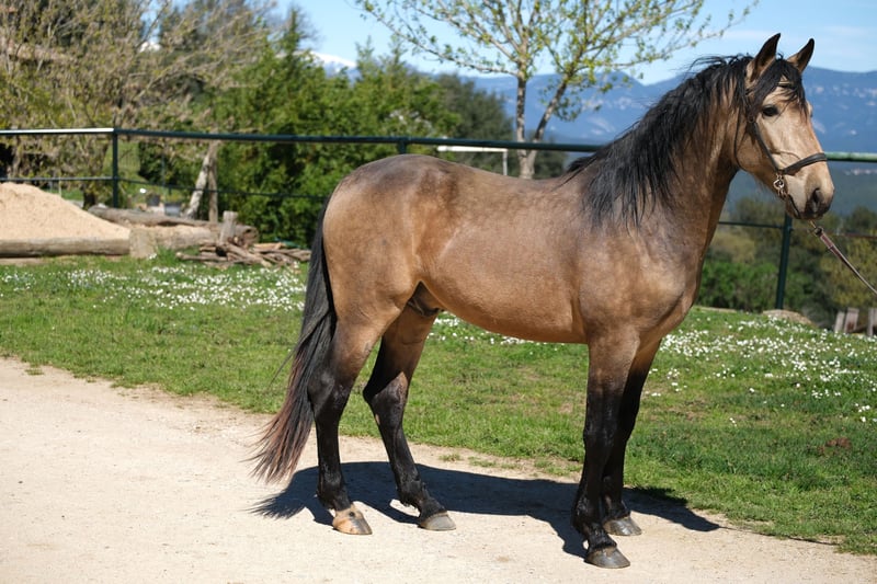 This beautiful PRE gelding is looking for his special person. He has a great presence, stunning gaits, and a very kind character. He is very polite and respectful in handling and pays attention to subtle signals, while also being brave and curious. Currently, he is 4 years old and approximately 1.62 m tall. However, he will grow taller and become more baroque, with an estimated final height of about 1.63-1.65 m. He is already under saddle, both in the arena and on trails, which he does very willingly and responds well to subtle cues. Additionally, he has also been driven and enjoys it. In the future, we can see him in various disciplines, including dressage, working equitation, shows, driving, or simply as a leisure partner. He lives in Spain with his breeder, who raises his horses with a lot of love, patience, and space. He lived with his mother and other mares with their foals in a large herd until his first year. They had a large pasture in a nature reserve with hills and rivers, allowing him to learn social skills and sure-footedness. Subsequently, he lived with other young stallions in a herd, and now he has been stabled, spending nights in a box and going out to the pasture or paddock with the herd during the day. He is a very sweet young gelding with a big heart, looking for his special person to continue his journey together. Location: Barcelona, Spain; a meet-and-greet in Spain and transport can be easily arranged.