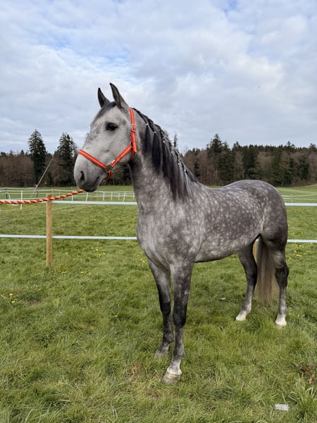 Zum Verkauf steht ein äusserst sympathischer und eleganter PRE Wallach mit einem Stockmaß von 1.54 m. Momo überzeugt durch seine schönen, schwungvollen Gänge und seine natürliche Ausstrahlung. Er ist sehr menschenbezogen, brav im Umgang und zeigt auch in der Freiarbeit grosses Potenzial. Durch seinen freundlichen Charakter ist er für jeden Spass zu haben. Er hat eine gute Grundausbildung und ist geländeerfahren. Der Wallach wurde bereits von einem 9-jährigen Mädchen geritten und zeigt sich dabei stets ausgeglichen und kooperativ – ideal auch als Familienpferd. Ist super lieb auch mit schwächeren Reitern. Ein tolles Pferd mit viel Potenzial und einem liebenswerten Wesen. Bei Interesse freuen wir uns über Ihre Nachricht!