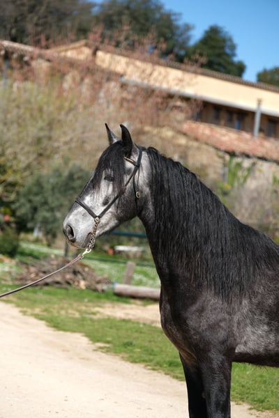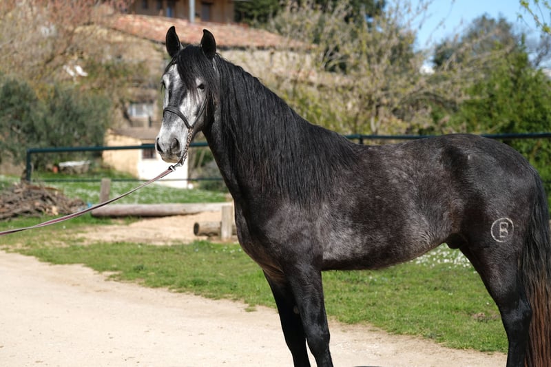 This beautiful PRE gelding is looking for his special person. He has a great presence, stunning gaits, and a very sweet character. He is very polite and respectful in handling and pays attention to subtle signals, while also being brave and curious. He is also a real cuddle bug and very people-oriented and sociable. Currently, he is 4 years old, approximately 1.60 m tall, and his estimated final height is around 1.63 m. He has already been backed, which he does very kindly, both in the arena and in the field. In the future, we can envision him in various disciplines, including dressage, working equitation, shows, or simply as a leisure partner. He lives in Spain with his breeder, who raises his horses with a lot of love, patience, and space. He lived with his mother and other mares with their foals in a large herd until his first year. They had a large pasture in a nature reserve with hills and rivers, allowing him to learn social skills and sure-footedness. After that, he lived with other young stallions in a herd, and now he is being accustomed to the stable, so he stays in the box at night and goes out to the pasture or paddock with his buddies during the day. He is a very sweet young gelding with a big heart, looking for his special person to walk his further path together. Location: Barcelona, Spain; a meeting in Spain and transportation can be easily arranged.