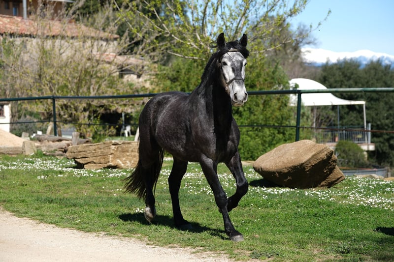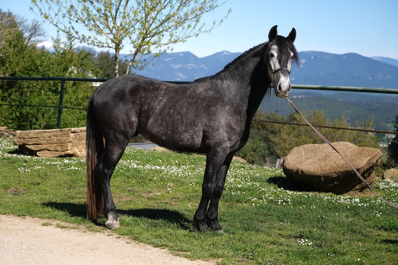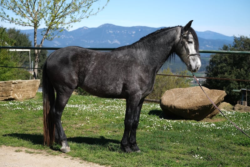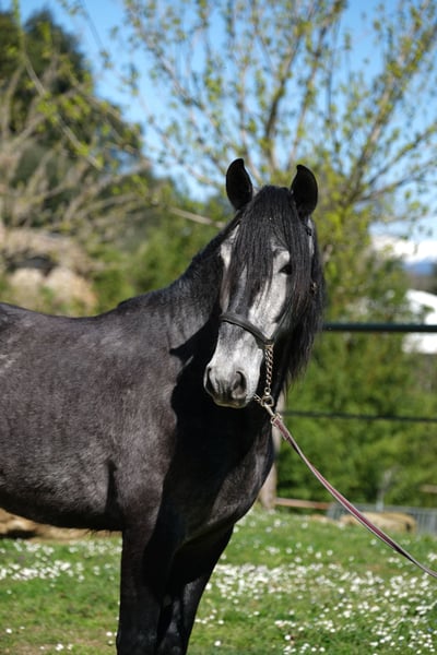 Ce magnifique hongre PRE est à la recherche de son âme sœur. Il a une belle présence, de magnifiques allures et un caractère très doux. Il est très poli et respectueux dans ses interactions et fait attention aux signaux subtils, tout en étant courageux et curieux. C'est aussi un vrai câlin et il est très attaché aux humains et sociable. Il a actuellement 4 ans, mesure environ 1,60 m, et sa taille finale estimée est d'environ 1,63 m. Il a déjà été monté, ce qu'il fait avec beaucoup de gentillesse, tant sur le manège qu'en extérieur. À l'avenir, nous pouvons l'imaginer dans différentes disciplines, que ce soit en dressage, en équitation de travail, en spectacle ou simplement comme partenaire de loisir. Il vit en Espagne chez son éleveur, qui élève ses chevaux avec beaucoup d'amour, de patience et d'espace. Il a vécu jusqu'à son premier anniversaire dans un grand troupeau avec sa mère et d'autres juments avec leurs poulains. Ils avaient un grand pâturage dans une zone protégée avec des collines et des rivières, ce qui lui a permis d'apprendre la compétence sociale et la sécurité à l'atterrissage. Ensuite, il a vécu avec d'autres jeunes étalons dans un troupeau et il est maintenant en train de s'habituer à la box, où il passe la nuit, et sort pendant la journée avec ses compagnons au pâturage ou dans le paddock. C'est un jeune hongre très gentil avec un grand cœur, à la recherche de son âme sœur pour continuer son chemin ensemble. Localisation : Barcelone, Espagne, une rencontre en Espagne et le transport peuvent être facilement organisés.