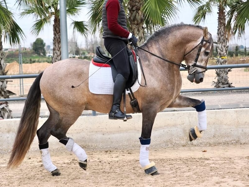 We present a striking Purebred Spanish Horse (PRE) with a beautiful grey coat, a tone that makes him highly attractive. This horse stands out for his impressive physique, with a classic and powerful morphology that combines beauty, strength, and elegance. His racial profile, with a well-developed neck and a noble, expressive head, makes him a standout in any environment. With training appropriate for his age, he has a solid foundation, ideal for continuing his development in various disciplines. He responds well both in the arena and outdoors, showing a good attitude and willingness to work. In addition to his imposing physique, this horse has a balanced and noble character, making him ideal for amateurs with promising future goals. This magnificent Spanish horse is perfect for those seeking beauty, nobility, and a horse to enjoy both in the arena and in the countryside.