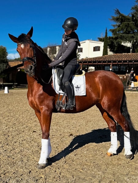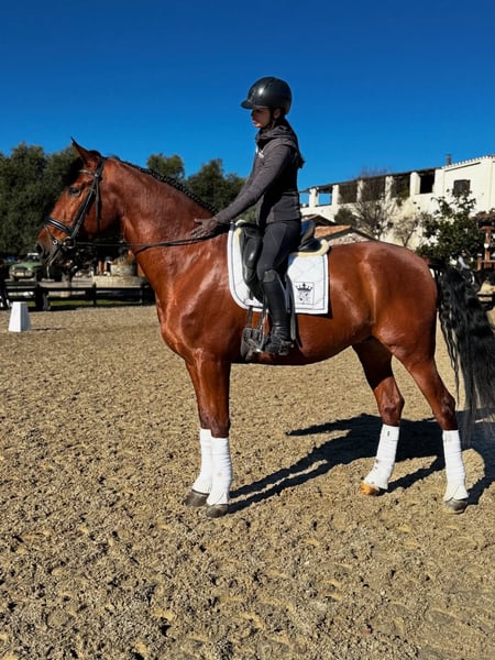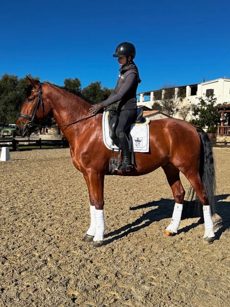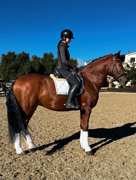 BREED: PURA RAZA ESPAÑOL DOB: 2021 Height: 1.73 meters Gender: gelding Level: basic level ridden, backed last year 2025 on summer, let him grow slowly as he is a big youngster. Very soft contact and steady, ideal to develop for his great balance. Pirofree and clean x-rays Category C 20.000€ + VAT WhatsApp +34696322560