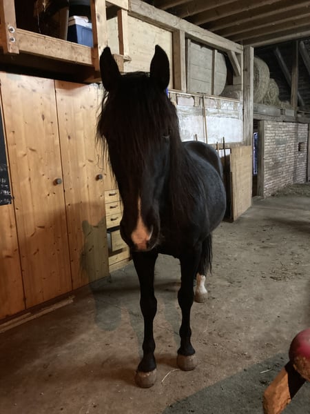I. steht gerne im Mittelpunkt und sucht deshalb einen Menschen, den er nicht mit einem anderen Vierbeiner teilen muss. Er ist parat für die Ausbildung als (fast-)Erwachsener und arbeitet sehr motiviert auf dem Platz. Er lernt wissbegierig und liebt es augenschaulich, Zeit zu zweit zu verbringen, auch wenn die Übungen mal schwierig werden. Ich bin auf dem Platz weniger motiviert und kann ihn nicht nach seinen Interessen fördern. Im Gelände ist er rasch überfordert (bei meinen Schüler:innen würde ich ein leichtes ADHS vermuten), kommt aber grundsätzlich überallhin mit. Nach einer halben Stunde reicht ihm das eigentlich... wir anderen sind dann erst warm ;). Er bewegt sich auch in der Herde eher als Platzhirsch, solange ihm keiner die Leviten liest. Manchmal verwechselt er das mit "Führung", wozu er aber definitiv nicht taugt. Die anderen Pferde lassen ihn einfach in seinem Tun und alle haben es gut mit ihm. Die Menschen in seinem Umfeld müssen eine sehr klare Kommunikation mit ihm finden und strenge Strukturen vorgeben. Er liebt es, betüdelt zu werden und ist sehr verschmust. Er würde wahrscheinlich gerne mit ins Haus kommen und im gleichen Raum wie sein Mensch schlafen. Teeniemässig spielt er mit allem, was ihm vor die Nase kommt und treibt Schabernack - ich muss sehr oft lachen. Er wurde im September 2019 in Spanien geboren, wuchs mit Altersgenossen auf grosser Weide auf und kam dann dreijährig zur Grundausbildung in die Schweiz. Während des Verkaufsprozesses wurde eine Veränderung im Kronbein festgestellt. Bei mir ist er nun seit zweieinhalb Jahren und ich habe nie etwas davon bemerkt im Alltag. Aktuell reite ich ihn wieder an, überlasse das aber noch lieber seinem neuen Menschen.