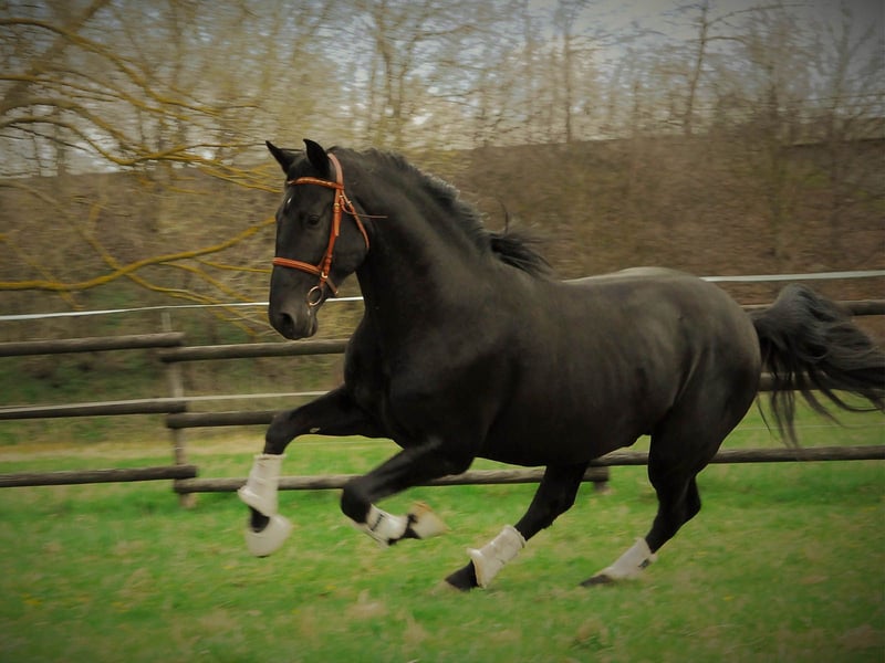 Großer PRE-Hengst, 1,65 m Viel Potenzial als Dressurpferd, mit drei sehr guten und taktsicheren Gängen sowie einem wunderschönen modernen Typ. Brav beim Ausritt im Gelände und im Straßenverkehr. Vollständige Abstammung inklusive Papiere. Saubere Röntgenbilder ohne Befunde oder Anmerkungen, auch von Rücken und Hals. Im Umgang ein sehr liebes Pferd, das Aufmerksamkeit sehr schätzt. Videos auf Anfrage. Wird nur wegen Schwangerschaft verkauft.