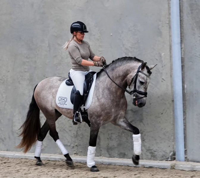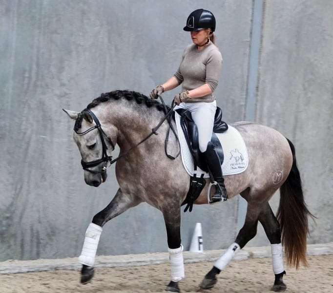 PRE mare DONJANA. At first a bit shy, this sweet girl now loves to be groomed and cuddled. This black pearl is super sweet, very sociable, and has excellent social behavior within the herd. But not only her beautiful baroque conformation and her wonderful color are strikingly beautiful. We were particularly impressed by this baroque beauty during her first ride. Although she was recently backed, DONJANA shows a pleasant diligence and incredible nerve strength under saddle. Additionally, her exceptionally comfortable movements make her a joy to ride. With her calmness and nerve strength, this wonderful mare is an ideal family and leisure horse. Whether in the arena or out on the trails, DONJANA is always with her rider and is not distracted by a lawnmower, barking dogs, or other external stimuli. DONJANA is not a mare that opens up to everyone immediately. But once she has given her heart to someone, this gem will be a loyal and reliable partner. X-rays are available.