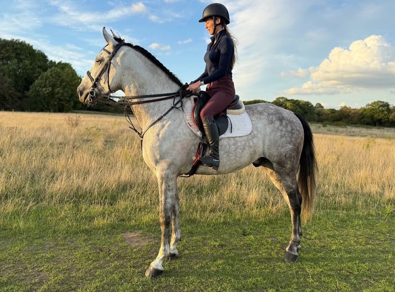 He was imported from Spain earlier this year & has a super temperament, both under saddle and in the stable. He has plenty of character, loves any attention and cuddles. No stable vices, since arriving here he comes in overnight and is turned out with another gelding in the day. In the school, he is still learning so needs a knowledgeable, patient rider to continue his education as has been produced slowly, but has 3 good paces on the flat with a big trot & powerful canter. He is very willing with his work ethic & he just wants to please. Has recently been introduced to polework and will continue to progress in his work whilst he is up for sale. Has popped a small cross pole. He has been regularly hacking, mainly going out alone but will also hack in out company happily without fizzing up. He is proving to be very mannerly in open spaces and with cars, bikes, dogs and livestock. As he is young, he does still like to look at things so needs a rider who understands this & will help give him the confidence he needs if required. Will make a lovely dressage prospect in time.