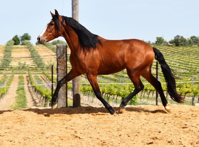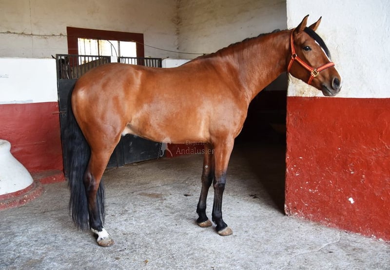 Carattere amabile, curioso, montato ai passo, alto, buone andature e genealogia di qualità. Genealogia: Escalera, Yeguada Militar. Il nonno Obcecado è qualificato. www.elegante-andalusier.com