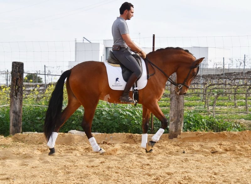 miły charakter, ciekawski, nieco ujeżdżony w podstawowych chodach, wysoki, dobry ruch i rodowód, rodowód: Escalera, Yeguada Militar, dziadek Obcecado jest kwalifikowany www.elegante-andalusier.com