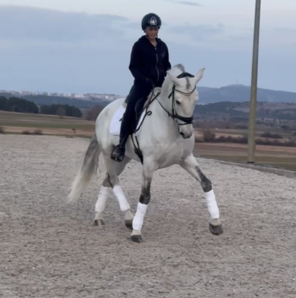 Confident ist ein eleganter 6-jähriger PRE Wallach mit vollen Papieren und einer Größe von 1,67 m. Er stammt aus den bekannten Blutlinien von Marín García, die für Qualität, Ausdruck und einen hervorragenden Charakter bekannt sind. Confident überzeugt besonders durch seine Arbeitsmotivation und seine positive Einstellung. Er ist ein Pferd, das gerne arbeitet, immer mitdenkt und schnell lernt. Dabei ist er kein typischer „fauler“ Spanier, sondern ein Pferd mit gut Energie, Motivation und Freude an der Arbeit. Aktuell befindet er sich in weiterer Ausbildung und zeigt bereits: -Seitengänge -grüne fliegende Wechsel -sehr schnelle Auffassungsgabe Trotz seiner Motivation und seines Vorwärtsdrangs bleibt Confident sehr sicher, ausgeglichen und angenehm zu reiten, wodurch er sich hervorragend für einen ambitionierten Amateurreiter eignet, der ein Pferd mit Potenzial weiter fördern möchte. Im täglichen Umgang ist er extrem unkompliziert und einfach zu handeln – wirklich eines der angenehmsten Pferde im täglichen Handling. Confident vereint Talent, Arbeitswillen, Ausdruck und einen außergewöhnlich lieben Charakter, wodurch er ein sehr vielversprechendes Pferd für die weitere Entwicklung in der Dressur ist. ✔ Aktuelle Röntgenbilder vorhanden ✔ Veterinärcheck vorhanden 📍 Standort: Deutschland 📩 Kontaktieren Sie uns gerne für Videos und weitere Informationen 🚚 Weltweiter Transport möglich