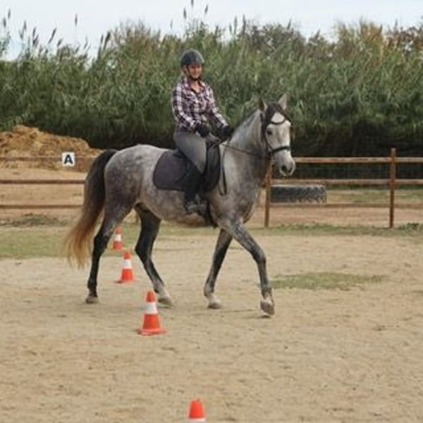 Zeus tiene siete años y fue montado de manera suave y tardía. Está muy bien educado y ha sido trabajado en el suelo, tanto en natural horsemanship como en los primeros enfoques de doma clásica y en trabajo en libertad. Zeus vive en paddock con la manada, tiene un rango alto y se lleva muy bien y de manera justa con los demás. Hace un año, ya participó en un desfile por el pueblo, lo hizo de manera excelente. Por lo demás, trabaja en la pista de doma, pasea y, de vez en cuando, viajamos con él en remolque para montar en otras instalaciones. Es un caballo muy cercano a las personas, noble y con carácter, que requiere ser visto. No es un caballo típico para todos ni un caballo infantil clásico. Ya han montado niños en él, lo cual tanto el caballo como los niños disfrutaron mucho, pero necesita un jinete seguro y sensible como su principal referente. Por lo tanto, no es un caballo para principiantes. También puede ir al campo y lo hace bastante bien, aunque todavía tiene algo de inseguridad en algunos momentos y necesita rutina y un jinete que le transmita confianza. Creemos que tiene grandes posibilidades de convertirse en un fiable y excelente caballo de campo. El caballo realiza todo tipo de movimientos laterales y flexiones, tiene un buen entusiasmo por el trabajo y se esfuerza mucho. Tiene movimientos preciosos, una estructura muy correcta y una buena línea de sangre. Mide aproximadamente 1,62 m. Trabaja con bocado de agua y normalmente con silla de doma o de barroco. Conoce ovejas, ponis, perros, tractores, coches, etc. Es un caballo absolutamente soñando, con el que se puede disfrutar mucho. Sus cascos se mantienen de forma regular, y una vez al año, nuestros caballos son revisados por fisioterapeuta y dentista, con dientes recién arreglados y en perfectas condiciones. Es portador de piroplasmosis, probablemente adquirida por una mordedura de garrapata en la gran reserva natural donde nació y creció. Nunca ha sido tratado, ya que se trata de un hallazgo casual que, por supuesto, informo. Podemos explicar más detalles en una conversación personal. Es un caballo muy resistente y sencillo de mantener. Conoce y acepta la cerca eléctrica y también ha estado en box para acostumbrarse. Podemos entregarlo directamente en su nuevo hogar. Se puede adquirir un sillín adecuado a un precio justo. Tiene un sillín barroco y uno de doma. No se vende en estabulación pura; es imprescindible que tenga acceso a un grupo (o al menos a otro caballo compatible), así como la posibilidad diaria de moverse libremente y recibir buenas manos. Para más información y vídeos, no duden en solicitarlo.