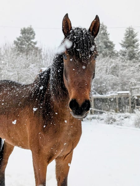 Ich hatte ihn im Alter von 2 1/2 Jahren von einer Züchterin aus Süddeutschland gekauft. Diese hatte ihn von ihren Partnern aus Spanien zugekauft. Er ist auf der Weide im Herdenverband aufgewachsen und in Deutschland immer auch mit anderen im Offenfall. Kennt aber zeitweise auch die Box.