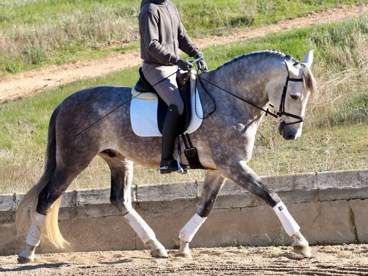 Wir präsentieren ein spektakuläres Exemplar des PRE, einen 2019 geborenen und 1,66 m großen Schimmel, der die Essenz des spanischen Pferdes verkörpert. Er zeichnet sich durch seinen guten Charakter und seine Rittigkeit aus, Eigenschaften, die ihn für Anfänger und Amateure gleichermaßen ideal machen. Seine Vielseitigkeit zeigt sich in der Arena, im Gelände und auf Festen, wo er sich jeder Situation mit Eleganz und Gelassenheit anpasst. Dieser Wallach, der frei von Piroplasmose ist, verspricht, ein zuverlässiger Begleiter für alle zu sein, die Spaß an der Dressur haben und sich weiterentwickeln wollen. Dieses spanische Pferd mit seinem Adel und seiner Ausbildung ist ein Juwel für jeden PRE-Liebhaber.