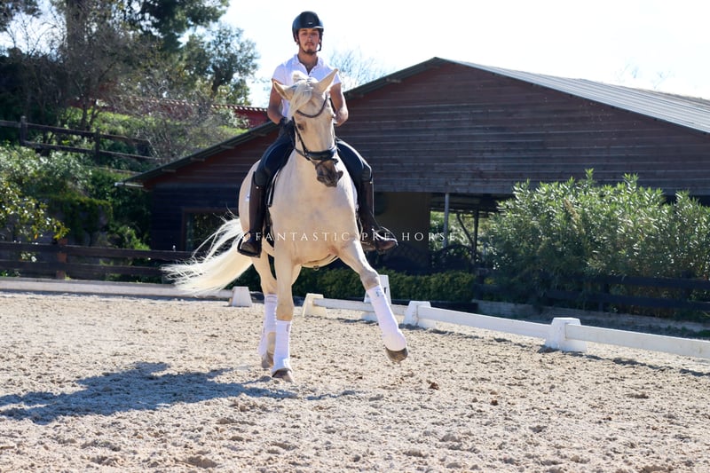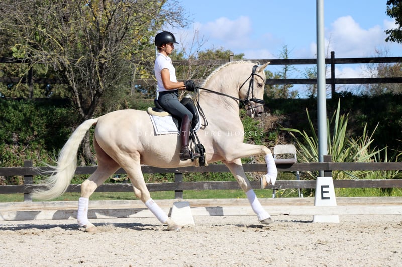 Boni is a truly lovely horse who is very gentle and caring with everyone. He is suitable for riders of all levels. His owner is a very novice rider who enjoys riding him, but due to personal circumstances, she needs to sell him. We are pleased to say that he is a well-trained horse, performing the three basic gaits with smooth transitions and working perfectly for his age and level. Currently, we are working on his flying changes, but he is still green in that area. We can offer training services to help develop him further. Boni performs lateral work effortlessly, including half passes and shoulder-in. He is a very easy horse to ride—just apply gentle pressure and go. He is based in the Pirofree area and has clean X-rays on file.