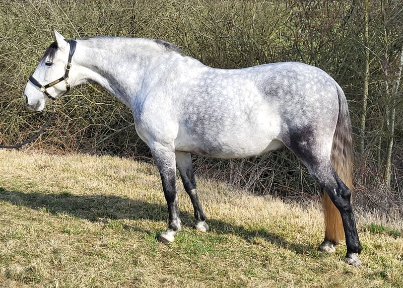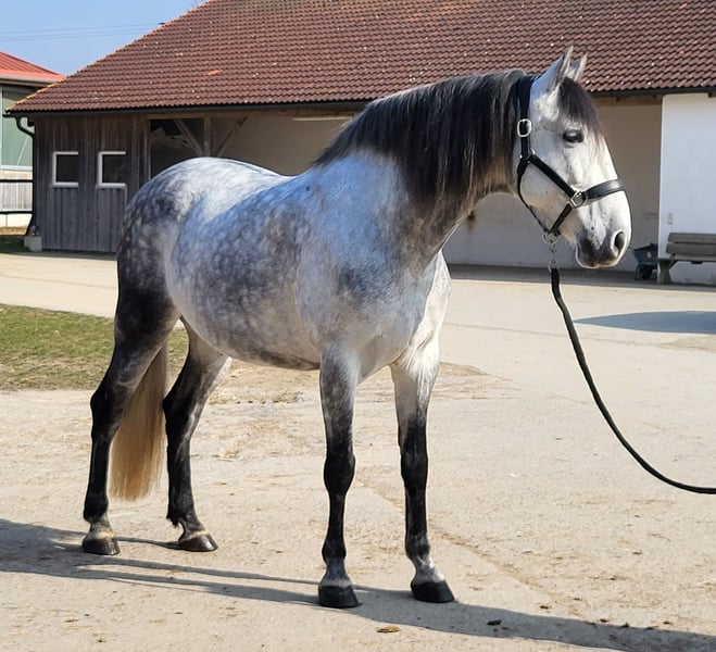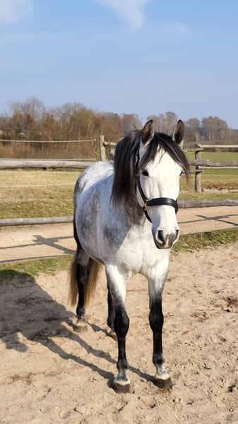 Gitano is an 8-year-old PRE gelding who impresses with his honest character, reliability, and strong bond with people. He is trained to an solid E-A level in dressage and consistently demonstrates a good work attitude and willingness to learn. He is also familiar with small jumps and handles them bravely. In handling, he is trustworthy and clear, very people-oriented. Due to his dominant nature, he is looking for a calm, consistent rider who can provide him with security and structure – then he becomes an absolutely dependable partner. He is familiar with indoor arenas and riding paddocks, works motivatedly, and shows honesty and great effort under saddle. He also reliably goes out into the field. Gitano would thrive in a home with open or active stall keeping, ideally in a herd of geldings. He has been barefoot for about a year and is regularly vaccinated and dewormed. Due to his size of approximately 1.60 m (15.3 hh), Gitano is not a weight carrier. Gitano is being sold at a significantly reduced price due to a tissue accumulation on his shoulder (which does not affect him). Further details gladly via private message. This is not an emergency sale! Priority is given to the right home over price. Gitano will only be placed in the best hands! No dealers or riding school operations.