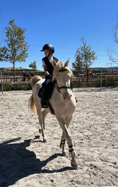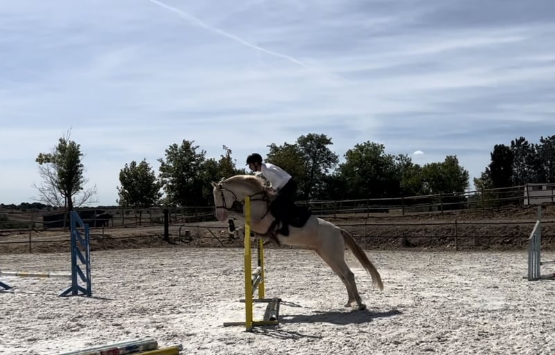 PRE gelding, 8 years Pure Spanish gelding of classic type with a balanced character and pleasant rideability. 📍 Madrid, Spain * Height: 154 cm * Year of birth: 2018 * Color: Isabelo * Blue eyes Comfortable and easy to ride, with good manageability and soft contact. Suitable for amateur riders looking for a safe and comfortable partner. Basic training in dressage and jumping. Shows a consistent and reliable attitude under saddle. ⸻ Pedigree: Sire: Tormento LII Dam: Alhucena Breeder: Yeguada El Trebol