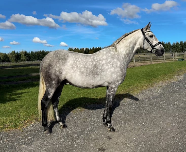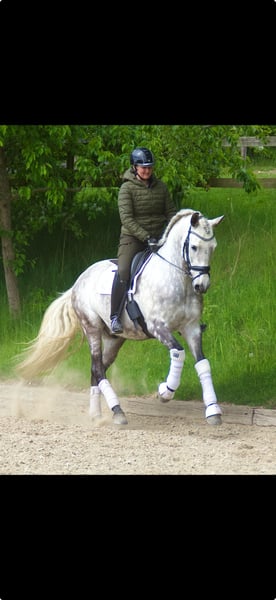 Elegido ist super rittig und bewegt sich sehr gut in allen drei Gängen, besonders sein Galopp ist groß, selbstsicher und bergauf. Er gibt immer sein Bestes und liebt auch das Ausreiten und Springen über kleine Zäune. Er ist sehr leicht zu verladen und hat keine Probleme mit dem Stall. Er hat eine Top-Abstammung, und ist sehr talentiert für die gesammelte Arbeit. Alles in allem ein sehr spannendes Pferd für die Zukunft.
