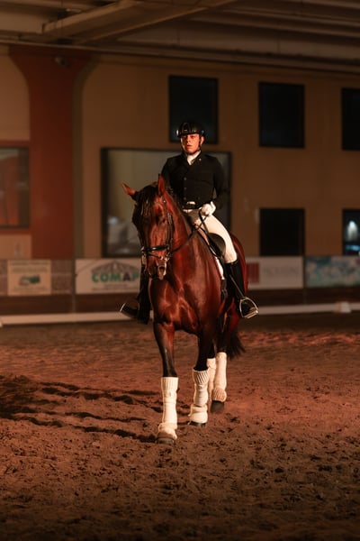 Azor MP castrone PRE con documenti ANCCE?? Nato nel 2018 (7 anni)? 172 cm Domato Liv. M (cambi al volo, spalle in dentro e lavori laterali, appoggiate e pirouette, qualche cambio in serie e iniziato piaffe) Cavallo iscritto FISE? Ha gareggiato in cat. E, F ed M ottenendo dei buoni risultati, fino a 65% in M. Attualmente in lavoro e in concorso. 2º classificato Master Iberico 2025 Liv. Evora (Curriculum FISE visibile su equiresults) Cavallo super affidabile, con carattere eccezionale, molto collaborativo e divertente, privo di qualsiasi vizio, sia da terra che montato. Movimenti regolari, con un passo di grande qualità. Montato in filetto e briglia. PREZZO RIBASSATO a causa di una lieve cicatrice al tendine dell'anteriore sx, nonostante cio il cavallo è in salute e si muove regolarmente alle tre andature Mornico al serio (BG) Per piu info Nicolas +39 3485842676