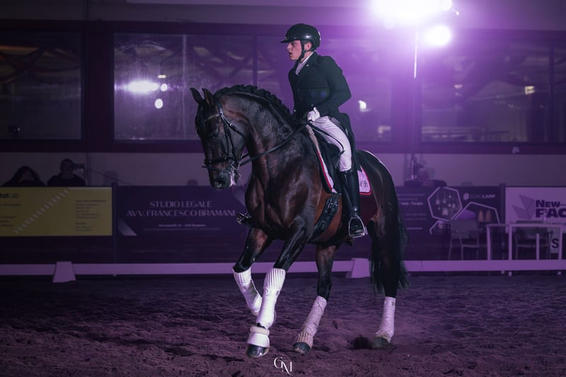 Azor MP PRE gelding with ANCCE documents Born in 2018 (7 years old) 16.1 hh Well-trained Level M (flying changes, shoulder-in, lateral work, half passes, pirouettes, some series of flying changes, and beginning piaffe) Is the horse registered with FISE? He has competed in E, F, and M categories, achieving good results, up to 65% in M. Currently in training and competition. 2nd place at the Iberian Master 2025, Evora Level (FISE curriculum available on EquiResults) A highly reliable horse with an exceptional character, very cooperative and fun, free of any vices both on the ground and under saddle. Regular movements with high-quality gaits. Saddled with a snaffle and bridle. PRICE REDUCED due to a slight scar on the left front tendon; despite this, the horse is healthy and moves regularly in all three gaits. Mornico al Serio (BG) For more information: Nicolas +39 348 5842676