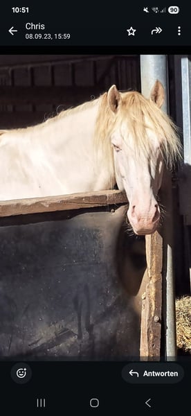 Vendiamo il nostro stallone PRE purosangue. Il pelo di Fandango brilla come perle al sole. La sua lunga criniera e la coda leggermente ondulata gli conferiscono molta espressione e bellezza. I suoi occhi blu e chiari guardano dritto nel cuore. Il bel stallone è nato il 01.05.2017 e ha un'altezza al garrese di 1,60 m. È un cavallo meraviglioso, quando lo montiamo diciamo "è la nostra nuvoletta" e nel maneggiarlo è un "gentleman". Fandango è stato addestrato a terra, conosce tutte le posizioni di conduzione ed è stato utilizzato anche nel coaching. Impara rapidamente le lezioni di circo, ama stare sul podio. Si avvicina all'aiuto per la salita ed è paziente durante la salita e la discesa. Quando viene montato, mostra andature comode, facili da sedere. Si percepisce una leggerezza nei comandi. Fandango padroneggia le andature di base ed è stato montato anche nelle andature laterali. Anche durante le passeggiate e nel traffico stradale, Fandango si dimostra un partner sicuro. Fandango ama imparare cose nuove ed è divertente svilupparsi ulteriormente con lui. Lo stallone è tranquillo per il maniscalco e per il trasporto, va e viaggia anche da solo nel rimorchio. Fandango ha documenti dell'ANCCE. Porta con sé le migliori caratteristiche dei suoi antenati, i cavalli Cartujano, in grazia e volontà di apprendere. Vendiamo Fandango solo con grande rammarico nella migliore casa del mondo. La posizione è 37574 Einbeck. Su richiesta, saremo lieti di inviarvi video della monta.