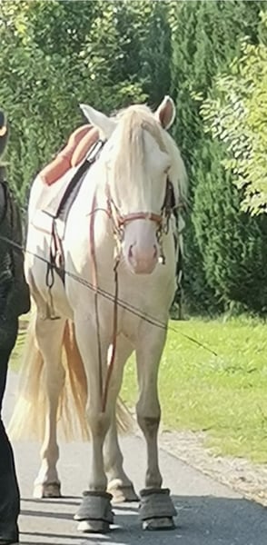 Nous vendons notre hongre PRE pure race. Fandango a un pelage brillant comme des perles au soleil. Sa longue crinière et sa queue légèrement ondulée lui confèrent beaucoup d’expression et de beauté. Ses yeux bleus clairs vous touchent droit au cœur. Ce joli hongre est né le 1er mai 2017 et mesure environ 1,60 m au garrot. En main, c’est un véritable « gentleman ». Fandango a été travaillé à pied, il connaît toutes les positions de conduite, et a également été utilisé en coaching. Il apprend rapidement les exercices de circonspection et adore se tenir sur le podium. Il s’approche de la marcheur, reste patient lors du monte et du descente. À cheval, il offre des allures confortables, faciles à monter. Fandango maîtrise les allures de base et a été monté en longues rênes. Lors de sorties en extérieur ou en trafic, il se montre un partenaire sûr. Fandango aime apprendre de nouvelles choses, et c’est un plaisir de continuer à évoluer avec lui. Ce hongre est ferré et débourré pour le loading, il voyage seul en van. Fandango a suivi une formation en coaching et thérapie assistés par le cheval. Fandango possède des papiers de l’ANCCE. Il hérite des meilleures qualités de ses ancêtres, les chevaux Cartujano, alliant élégance et volonté d’apprentissage. Nous vendons Fandango uniquement à contrecoeur, pour le meilleur foyer du monde. Il se trouve à 37574 Einbeck.