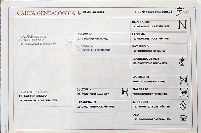 Extremadura JV es una potranca muy dulce, tranquila y apacible, realmente una yegua con carácter femenino. Ya ha recibido su primera vacunación y ha sido paciente con el herrador, dejando que le arreglen los cascos sin problemas. Es de fácil manejo y conoce lo básico de un potrillo. Durante el día, pasa su tiempo con su madre y sus compañeras yeguas en el paddock, donde duerme a la sombra o galopa por las colinas arriba y abajo. Ya ha sido destetada de su madre y por la noche descansa en un box con paja suave, después de jugar durante el día. ¡Puedo ayudarle con el transporte! Para más preguntas, estoy disponible por WhatsApp y, si lo desea, puedo enviarle un video.
