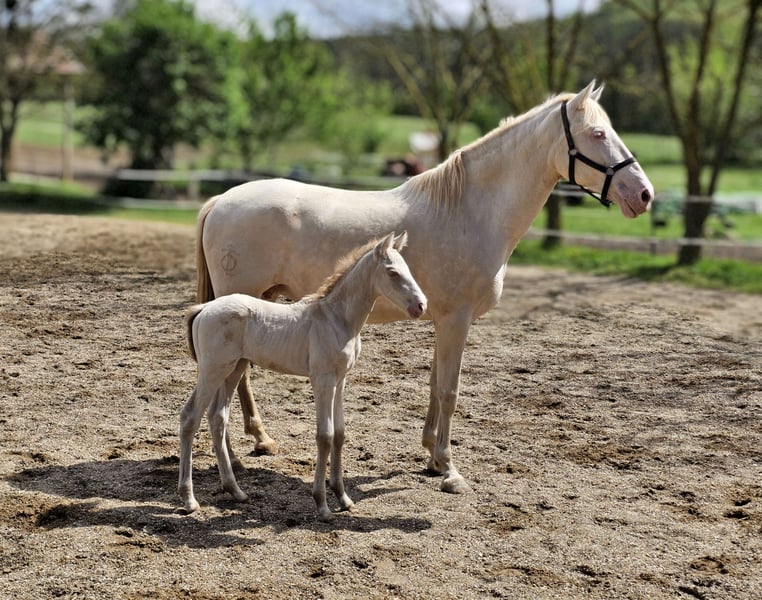 Señora JV is a very sweet, gentle, and calm filly – a truly “girly” little horse. She has already received her first vaccination and has been well-behaved when having her hooves trimmed by the farrier. She is easy to handle and is familiar with the basics of foal training. During the day, she spends her time on pasture with her mother and mare companions, dozing in the sun or galloping up and down the hills. She has already been weaned from her mother and relaxes in a cozy box on soft straw in the evenings after a day of play. I am happy to assist with transport! For further questions, please contact me via WhatsApp, and upon request, I can send you a video.