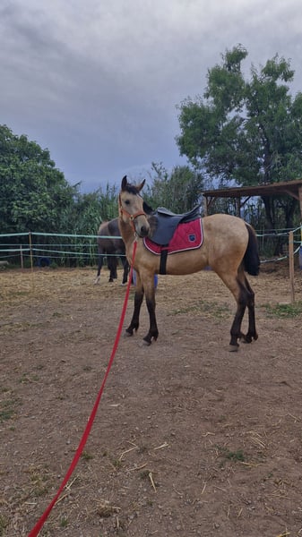📅 Fecha de nacimiento: 21/03/2024 🎨 Capa: Baya 📏 Altura actual: 1.50 m 🏡 Procedencia: Yeguada Salvatella 🌟 Orígenes: Hija de Arenero 💠 linaje : Barroca Yegua joven de gran nobleza y carácter dócil, ideal para doma o cría. Muy buenos movimientos y presencia típica del Pura Raza Española. 👉 No dispone de papeles, solo pasaporte. 💰 Se vende o se acepta cambio (preferiblemente por porta P.R.E.). 📍 Más información y vídeos por privado.