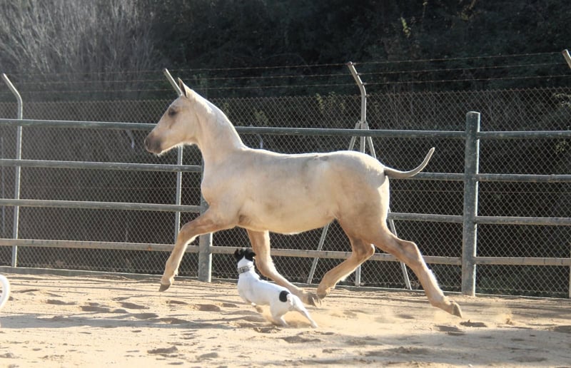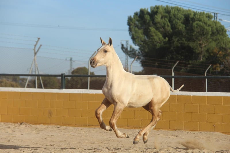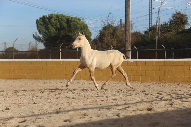 Dieses bezaubernde PRE-Stutfohlen sucht nach ihrem Herzensmenschen. Sie hat bereits jetzt eine tolle Ausstrahlung und wahnsinnig tolle Gänge. Charakterlich zeigt sie sich altersentsprechend noch zurückhaltend, aber neugierig und dabei bereits jetzt sehr lieb und angenehm im Umgang. Sie ist aktuell 9 Monate alt und ausgewachsen schätzen wir sie auf etwa 1,63 m. (Ihre Mutter ist 1,60 m groß und ihr Vater 1,68 m) Sie wächst gerade noch in ihrer Fohlenherde auf. In Zukunft können wir sie uns aber in vielen Bereichen vorstellen, sowohl in der Dressur, für Working-Equitation, für die Show, in der Zucht oder einfach als Freizeitpartnerin. Gerade für die Zucht ist sie auch besonders spannend durch ihre Sonderfarbe und die atemberaubenden Gänge dazu. Standort: Barcelona, Spanien, ein Kennenlernen in Spanien und der Transport kann problemlos organisiert werden
