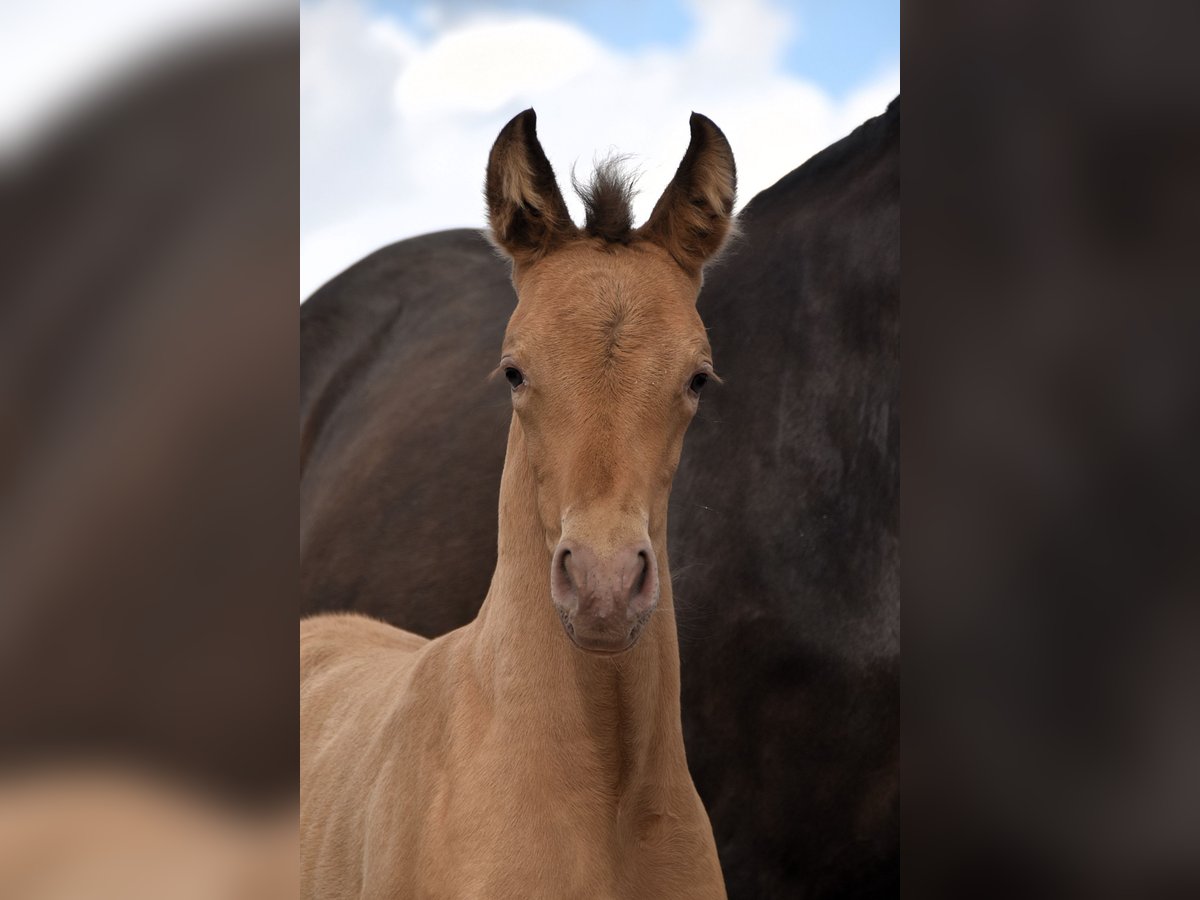 Melora ist eine äußerst einzigartige PRE-Doppelpferd (Isabelo) Fohlen, das zum Verkauf steht. Sie wurde von Emperadora XLVI und Maestrante PM geboren. Emperadora ist eine schwarze Perlenstute mit einer Größe von 1,62 m, Tochter des gekörten Hengsts Gente und auf der mütterlichen Seite Enkelin des gekörten Hengsts Femento. Ihr Vater, Maestrante PM, ist unser eigener Hengst, ein beeindruckender Doppelpferd mit einer Größe von 1,71 m. Er vererbt starkes Knochenmaterial, Größe und eine große Bewegungsfreiheit an seine Nachkommen. Neben seinen physischen Qualitäten ist Maestrante für sein vorbildliches Wesen bekannt: unkompliziert, großzügig und stets arbeitswillig. Er hat außerdem erfolgreich am Concurso Centro Europeo teilgenommen, gewann 2022 die Bronzemedaille in der Kategorie der Hengste über 7 Jahre und 2023 die Goldmedaille für Funktionalität (Unter dem Sattel, Hengste 7+ Jahre).