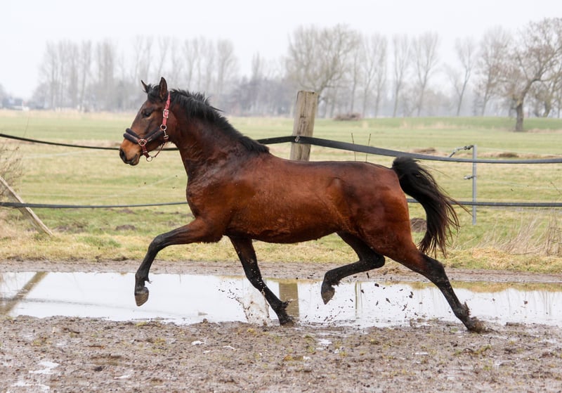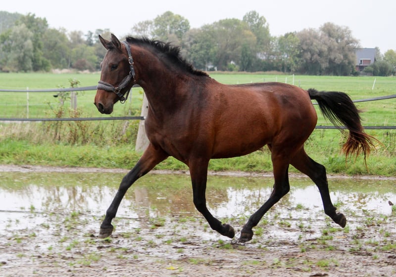 Garúa Ducal hat sehr interessante Eltern. Ihr Mutter, die Rappstute Gamberra, kommt über die Evento Linie, welcher unter Ignacio Rambla erfolgreich an den Olympischen Spielen teilgenommen hat. Sie war selber in Spanien lange Reitpferd und wurde weit ausgebildet. Heute lebt sie in Dänemark. Der Vater von Garúa (heißt: sanfter Regen) ist der Falbe Furtivo JC, ein über ganz klassische, namhafte Hengste gezogenes Bewegungswunder, der inzwischen in Schleswig-Holstein lebt. Garúa ist in Norddeutschland, auf unserem großen PRE Gestüt aufgewachsen. Sie kennt Weide und die Stutenherde. Sie ist freundlich und umgänglich. Garúa trabt absolut spektakulär mit viel Schub aus der Hinterhand und dem rassetypischen Vorderbein. Sie hat Power und ist agil und wendig. Ein Traum für Reiter mit Freude an der Working Equitation. Lange haben wir überlegt, Garúa zu behalten. Da wir allerdings ungerne Zuchtstuten unter 1,65 m einsetzen, haben wir uns entschlossen, Garúa zu verkaufen. Bei Interesse kontaktieren Sie uns gerne.